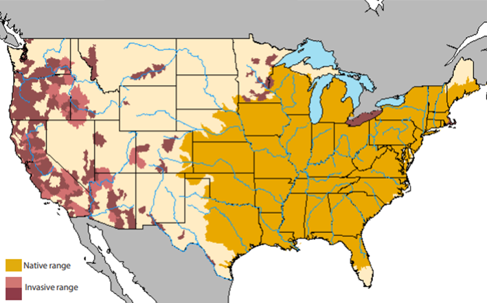 Bullfrogs are native to the central and eastern United States (U.S.), southeastern Canada, and have been introduced into the western U.S. in the early 1900s. They were introduced to the West for aquaculture (or frog farming) for food production i.e., frog legs. To a lesser extent, they were brought in as a biological control for insects and were released into natural waterways as unwanted pets. Bullfrogs presumably escaped farming operations and spread to natural areas, likely finding that the Northwest is quite hospitable with our mild winters and plentiful water features.